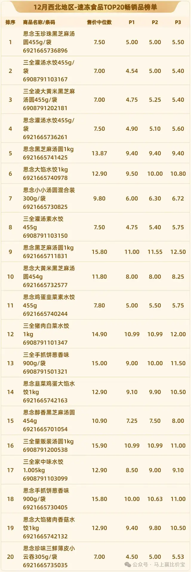 2024年12月全國速凍食品TOP20暢銷品榜單