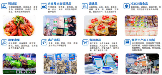 調理類食材:冷凍禽肉類調理制品、速凍米面制品、裹面制品、魚糜制品、菜肴制品、燒烤制品、果蔬制品、火鍋湯料制品、湯羹制品、燒烤調理食材等