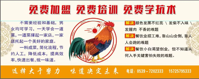操作簡單,味道統(tǒng)一,一醬成菜,簡化流程,節(jié)約人工,降低成本,提高效率,快速出餐,不需要經驗和基礎,男女均可學習,一天學會一道菜,一道菜撐起一家店,一家店托起一個美好的家庭。