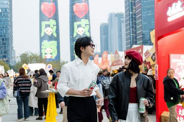 當夜幕降臨,火鍋的沸騰聲與碰杯的清脆交織成曲,雪花啤酒的展臺仿佛變成城市夜生活的能量站。這里沒有正襟危坐的品酒儀式,只有舉著啤酒蹦跳的潮人、咬著糖畫串打卡的情侶、對著手機自拍玩手勢舞的漢服少女——每個人都在用自己喜歡的方式,為這場微醺盛宴寫下注腳。